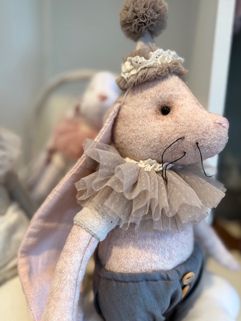 Die Kleidung des Hasen ist abnehmbar und kann gewaschen oder individuell ergänzt werden — ideal für Familien, die Wert auf langlebige, besondere und hochwertige Spielsachen legen.
