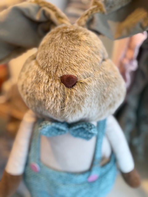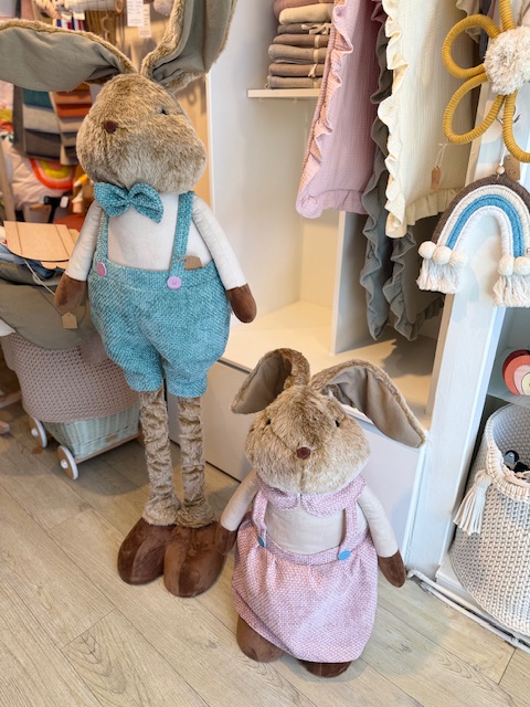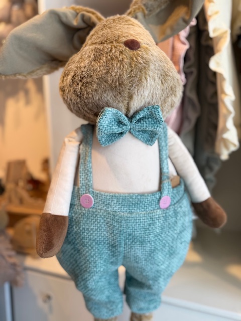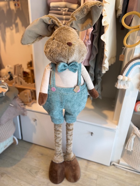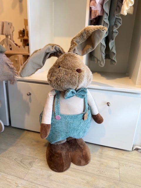 Der Hase ist verstellbar und ausziehbar – von ca. 66 cm bis auf über 1,20 m Höhe. Dadurch kann er flexibel dekoriert werden, auf dem Boden, neben dem Ostertisch oder im Kinderzimmer. Durch seine langen Beine und die hochwertige Verarbeitung wirkt er wie eine Figur aus einem Märchen.