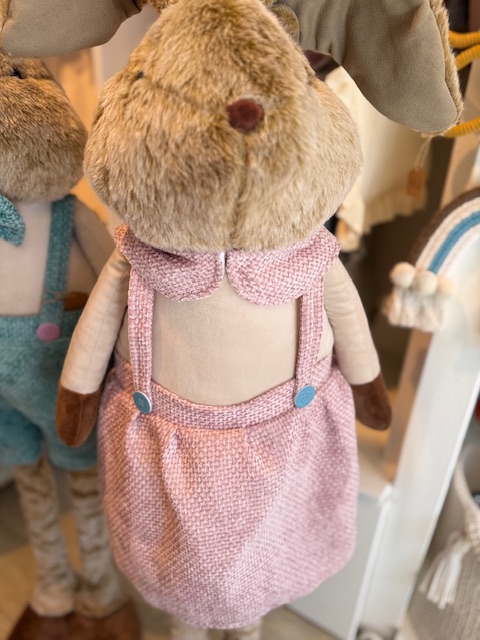 Der weiche Stoff, die hochwertige Verarbeitung und das liebevolle Design machen ihn nicht nur zu einer wunderschönen Deko, sondern auch zu einem Hasen, den man gern umarmt, festhält und immer wieder anschauen möchte.
